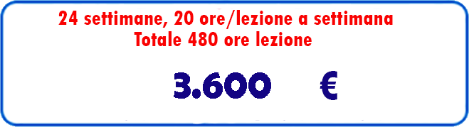 4 ore/lezione al giorno per 5 giorni a settimana: 24 settimane per un totale di 480 ore/lezione. (Scopri di più)