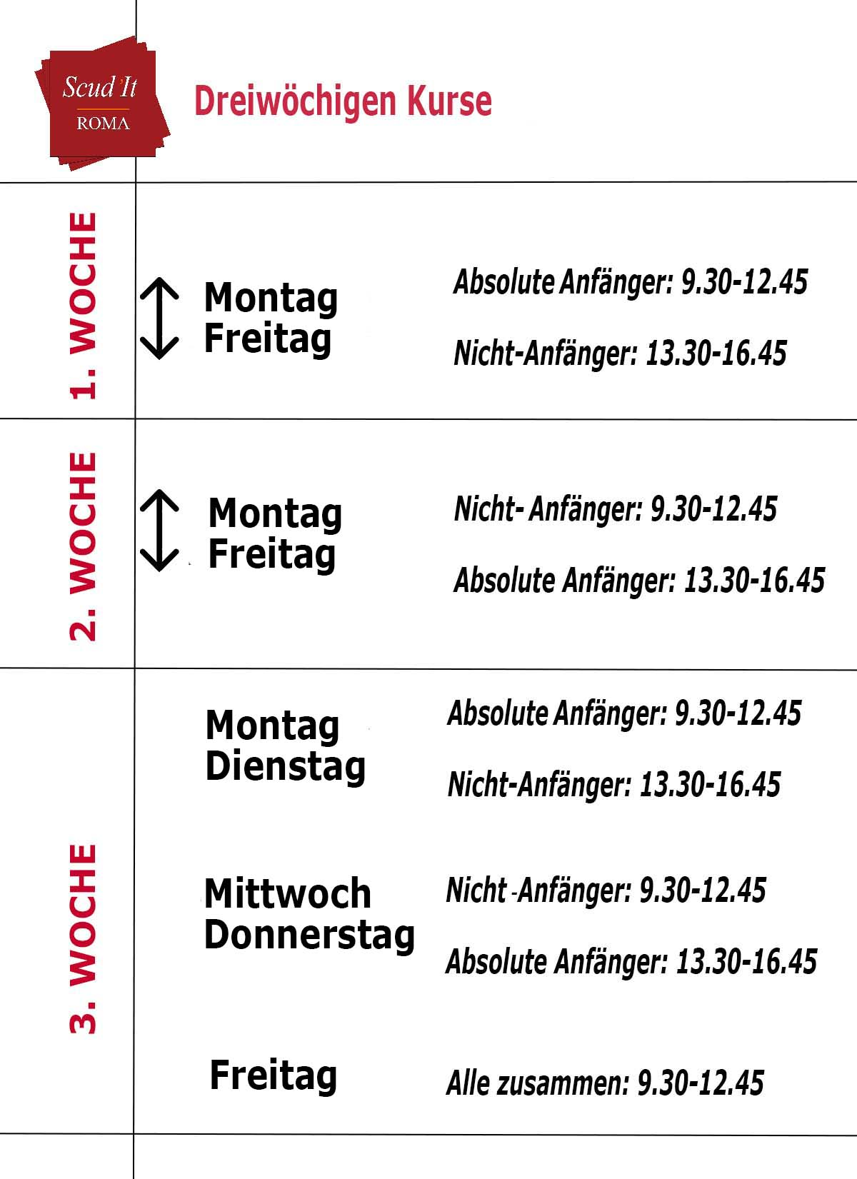 Dreiwöchigen Kurse 12.07 - 01.08 2026 Alle Schüler nehmen von 9.30
