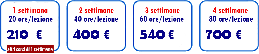 I corsi intensivi si svolgono dal lunedì al venerdì in classi di massimo 12 persone per un totale di 20 ore/lezione a settimana. |